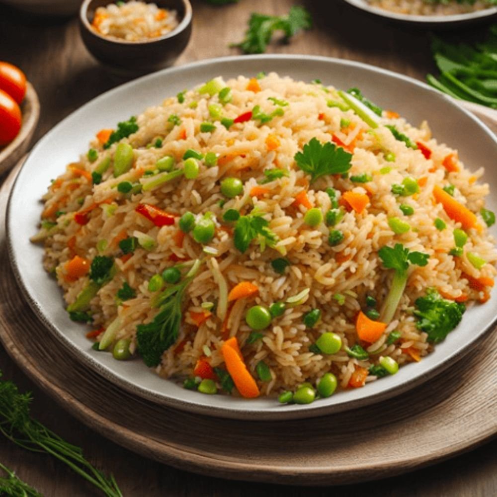 Singapore Fried Rice Veg – A fiery and colorful rice dish tossed with fresh vegetables, bold spices, and tangy sauces for a delicious Indo-Chinese twist.